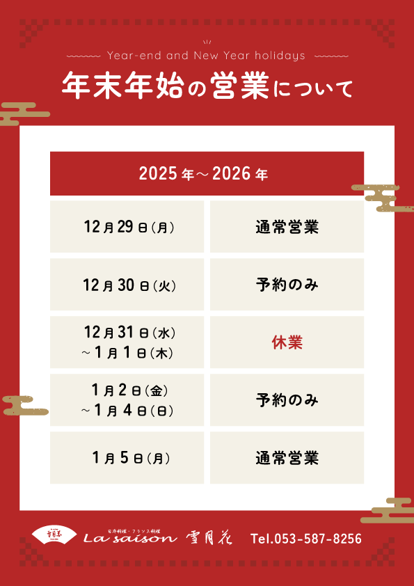 「雪月花」より お知らせ